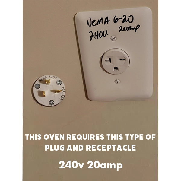 -Electrical plug and outlet: You will require a NEMA 6-20P Plug and a NEMA 6-20R receptacle.