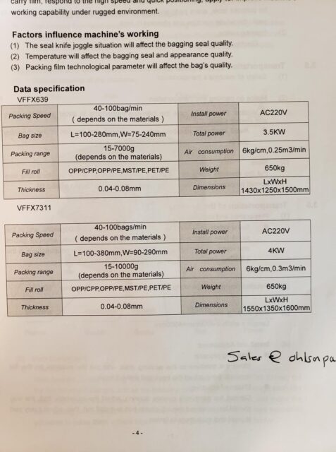 Ohlson - VFFS Bagger
